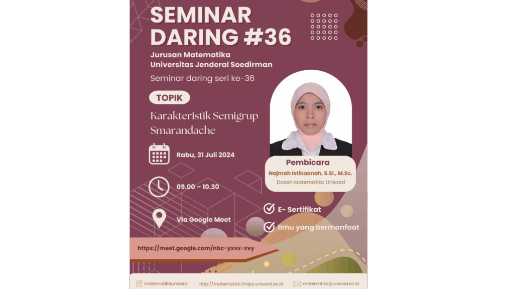 Reuni Akbar Jurusan Matematika kali ini akan menghadirkan alumni dari tahun 1999 – 2019 nih. Gimana ya cerita kakaknya bisa sampai di tahap sekarang ini? Penasaran, kan? Untuk teman-teman yang ingin tau lebih lanjut, yukk ikutan Reuni Akbar Jurusan Matematika?