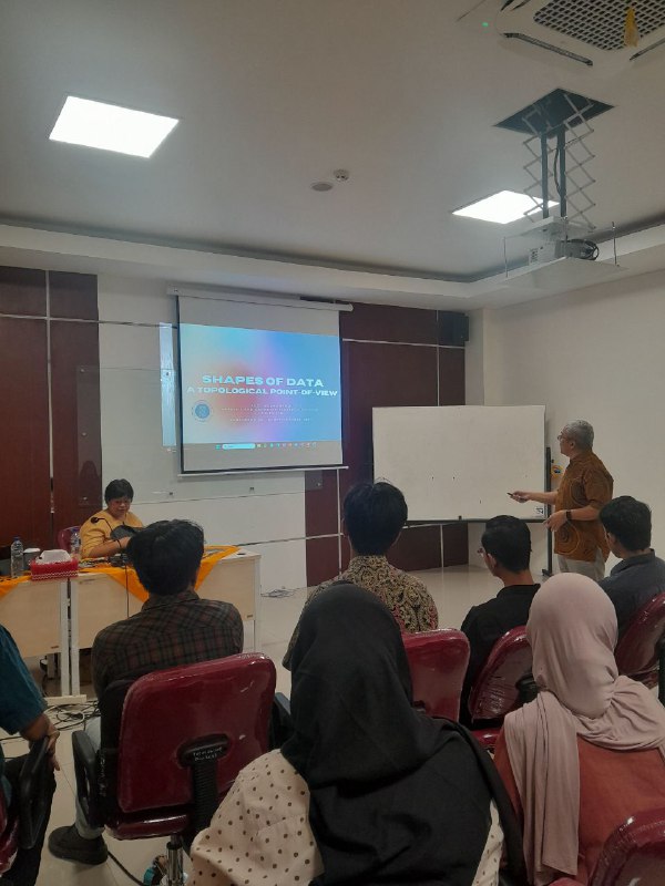 Pada sesi awal, Ibu Dr. Jalina Widjaja, S.Si., M.Si. memaparkan informasi mengenai Institut Teknologi Bandung, khususnya Jurusan Matematika dan peluang untuk melanjutkan studi di sana. Kemudian, pembahasan beralih pada topik matematika mengenai Delay Differential Equations (DDE), atau persamaan diferensial dengan waktu tunda. Beberapa contoh sederhana dalam kehidupan sehari-hari menjadi pengantar yang sesuai untuk dapat memantik pemahaman dari konsep awal topik ini, yang ternyata sangat dekat dengan keseharian kita. Setelahnya, materi kuliah dilanjutkan dengan analisis data topologi yang dibawakan oleh Bapak Drs. Yudi Soeharyadi, M.Si., Ph.D., di mana materi tersebut merupakan pendekatan dalam sains data menggunakan konsep topologi untuk memahami struktur bentuk data.